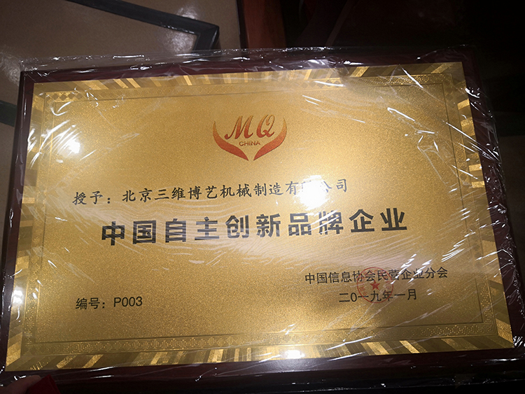 熱烈祝賀北京三維博藝機(jī)械制造有限公司2019年1月獲得中國自主創(chuàng)新品牌企業(yè)稱號(hào),新的一年有個(gè)好的開始,讓我們?nèi)w員工擼起袖子加油干,保護(hù)好今天擁有的,創(chuàng)造明天想要的。